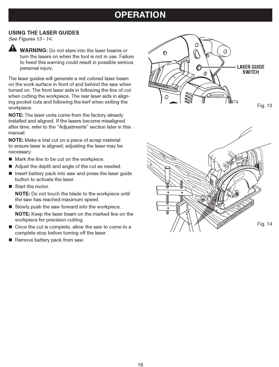 when cutting the workpiece. The rear laser aids in align-