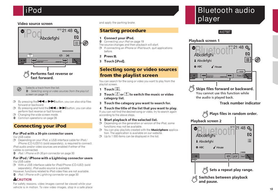 iPod / iPhone with Lightning connector on page 30
