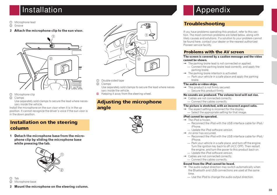 2 Mount the microphone on the steering column.