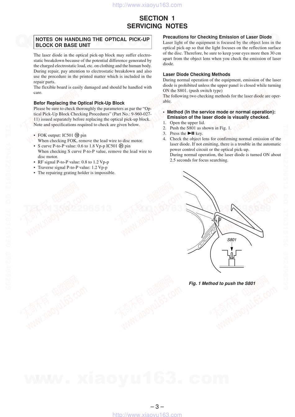 tical Pick-Up Block Checking Procedures" (Part No.: 9-960-027-