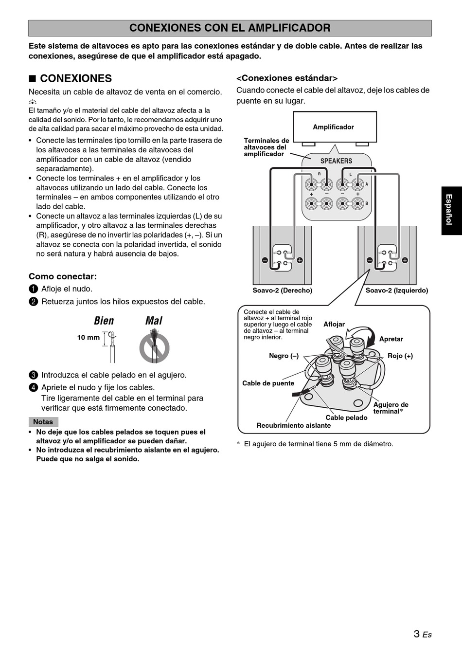 Este sistema de altavoces es apto para las conexiones estándar y de doble cable. Antes de realizar las