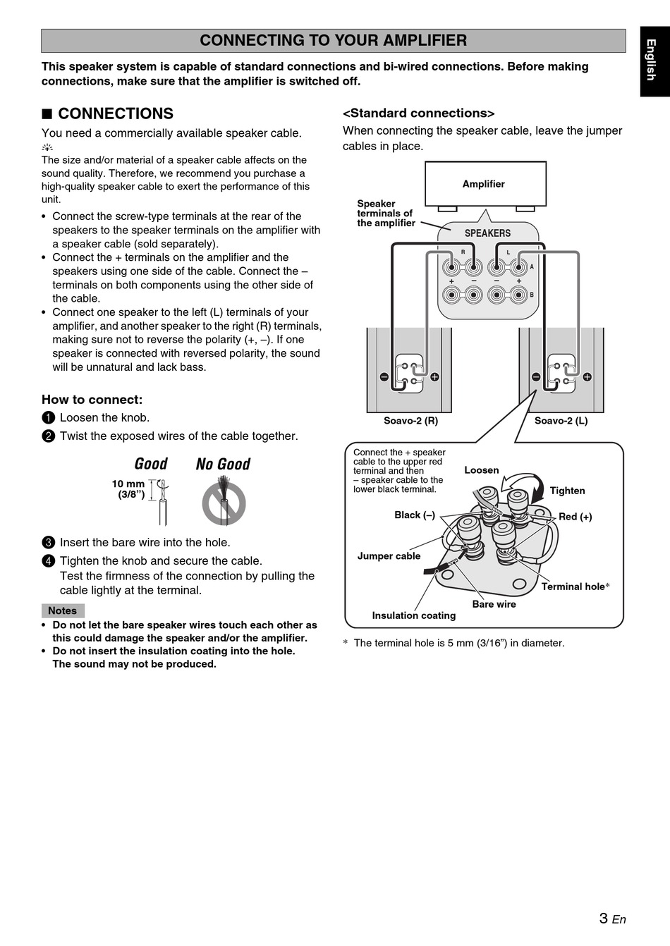 This speaker system is capable of standard connections and bi-wired connections. Before making