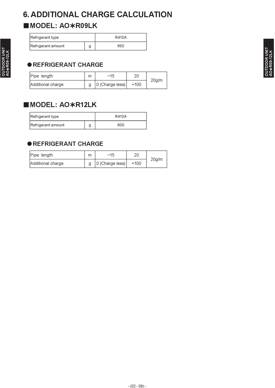 AS G12LLCA Series Additional Charge Calculation