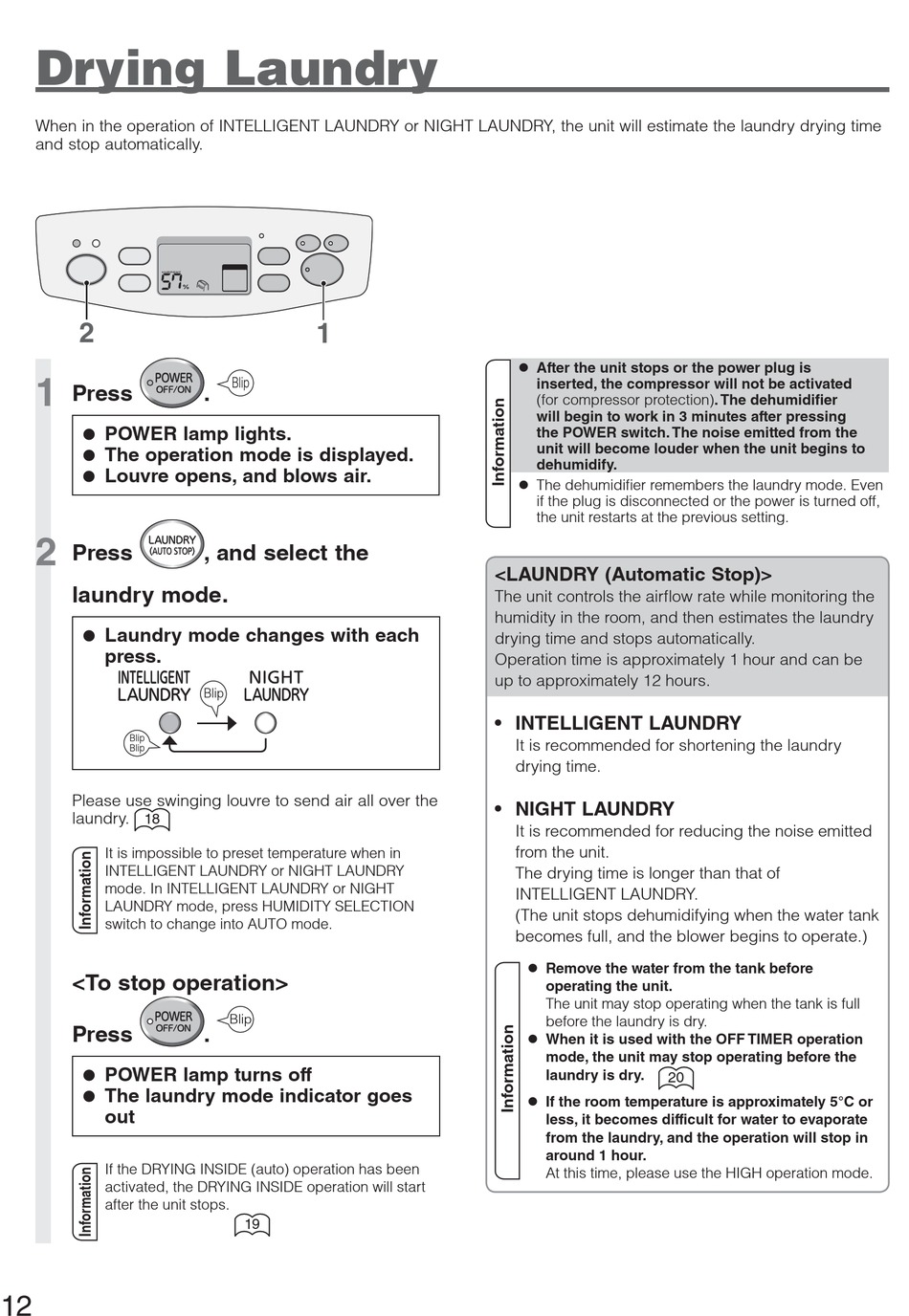 When in the operation of INTELLIGENT LAUNDRY or NIGHT LAUNDRY, the unit will estimate the laundry drying time