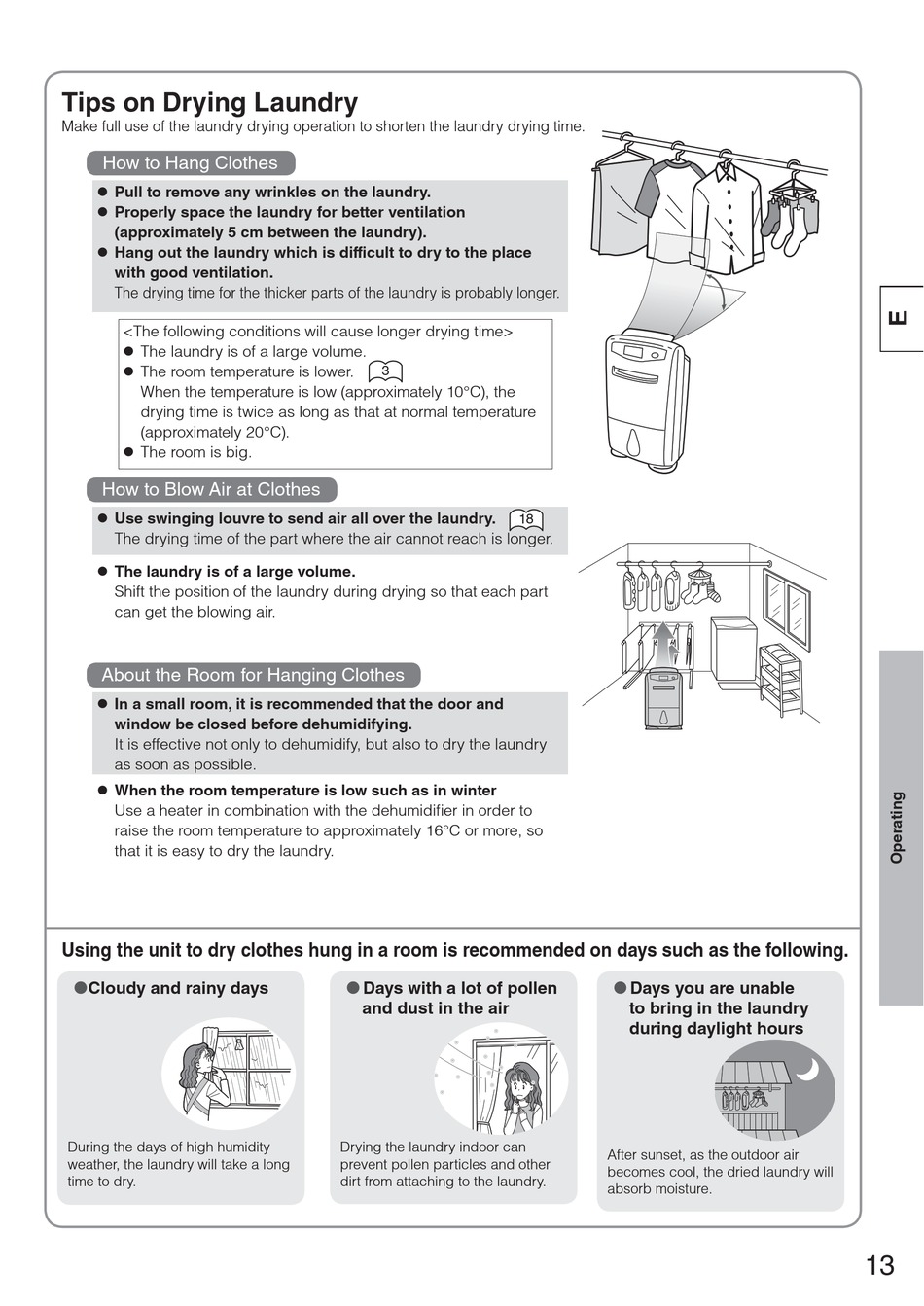 Using the unit to dry clothes hung in a room is recommended on days such as the following.