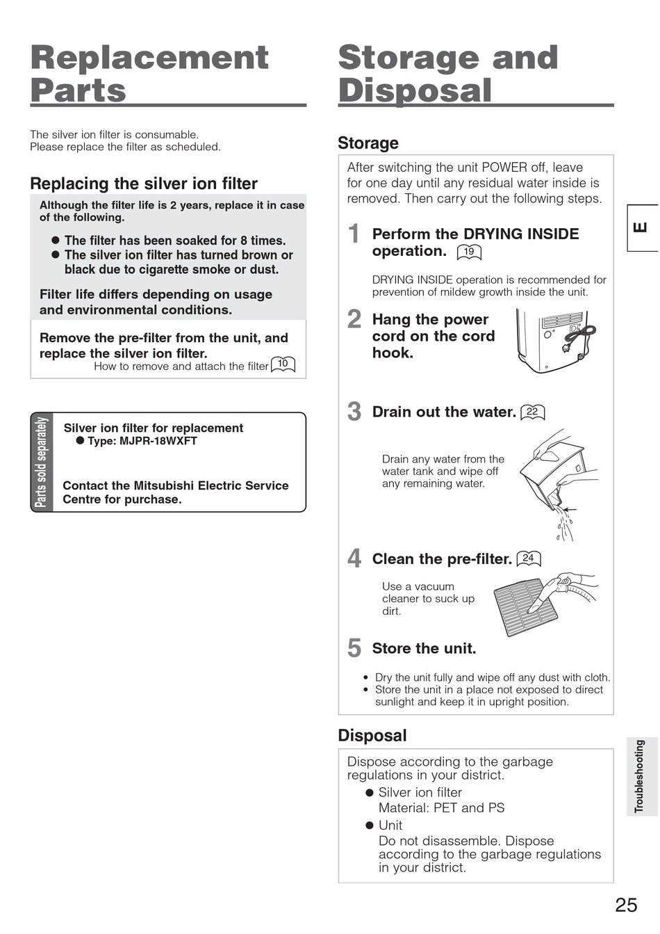prevention of mildew growth inside the unit.