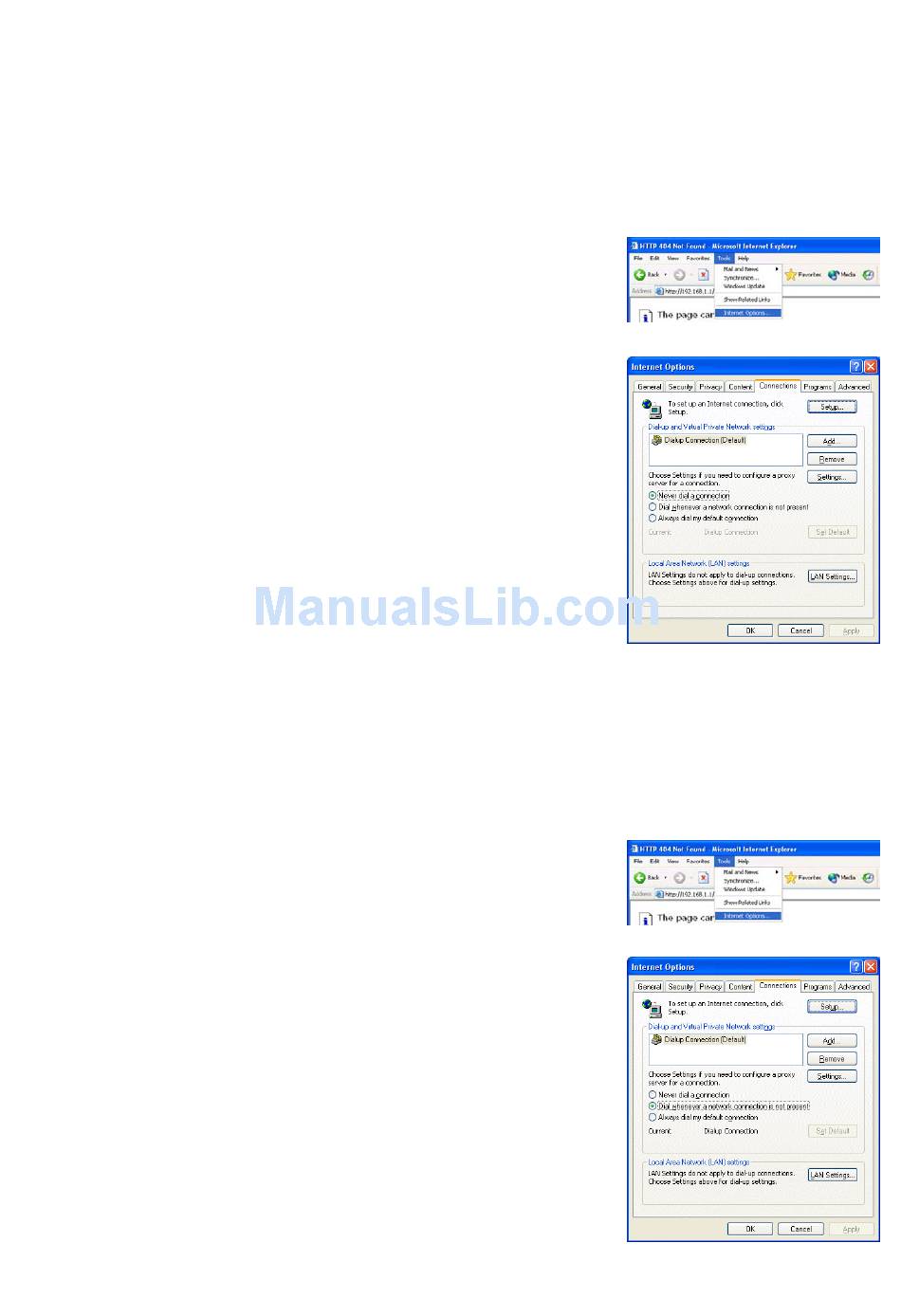 Note: The settings and screen images used as examples in this manual are based on Internet Explorer 6.0.