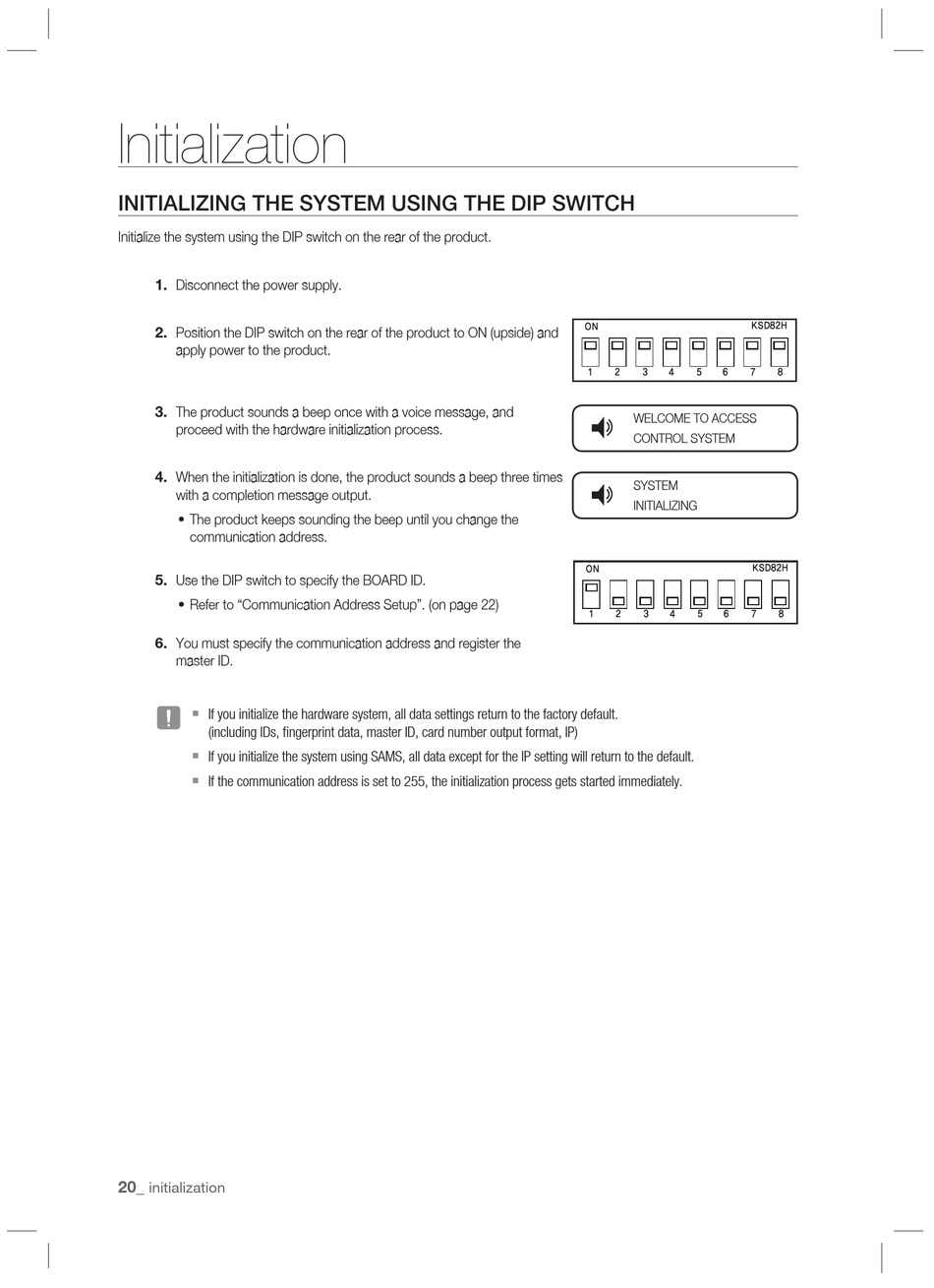 INITIALIZING THE SYSTEM USING THE DIP SWITCH