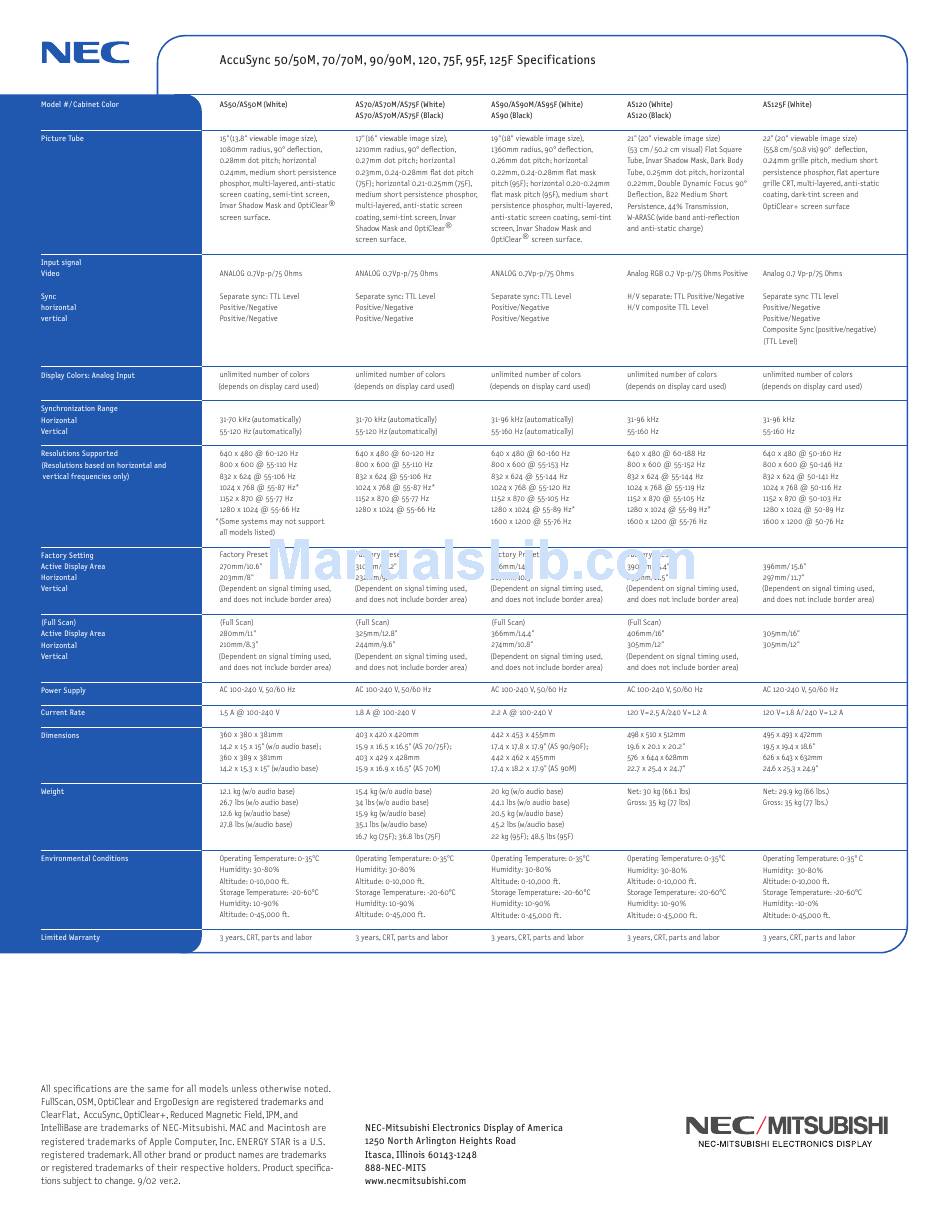 Accessories NEC AccuSync NEC Display Solutions USER'S MANUAL AccuSync User Manual