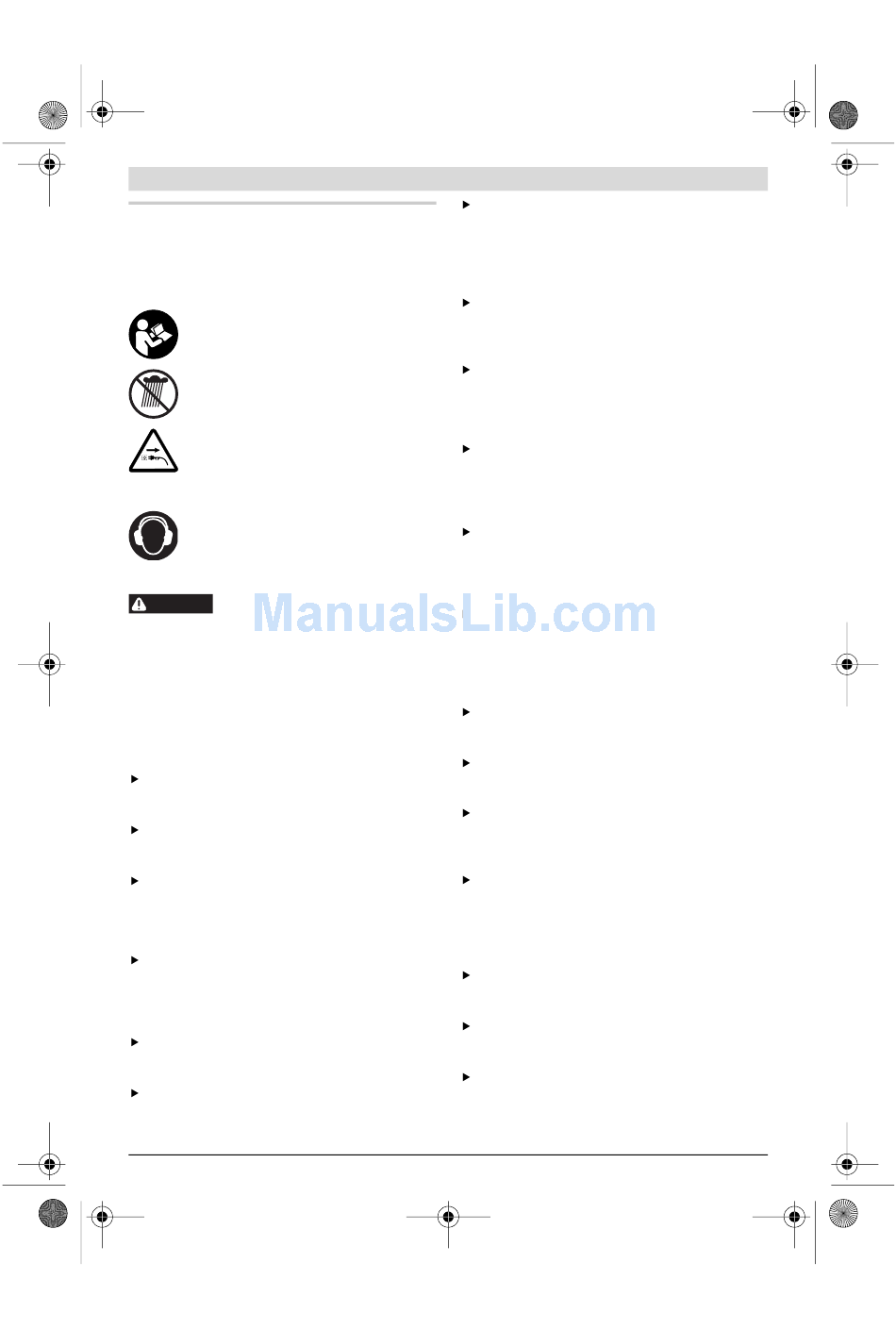 undvika elverktygets användning i fuktig miljö. Fel-