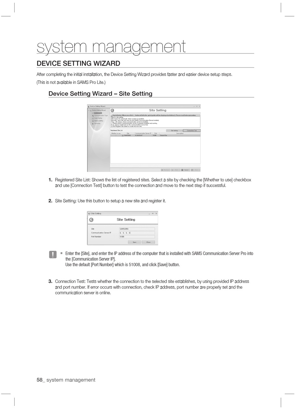 Enter the [Site], and enter the IP address of the computer that is installed with SAMS Communication Server Pro into