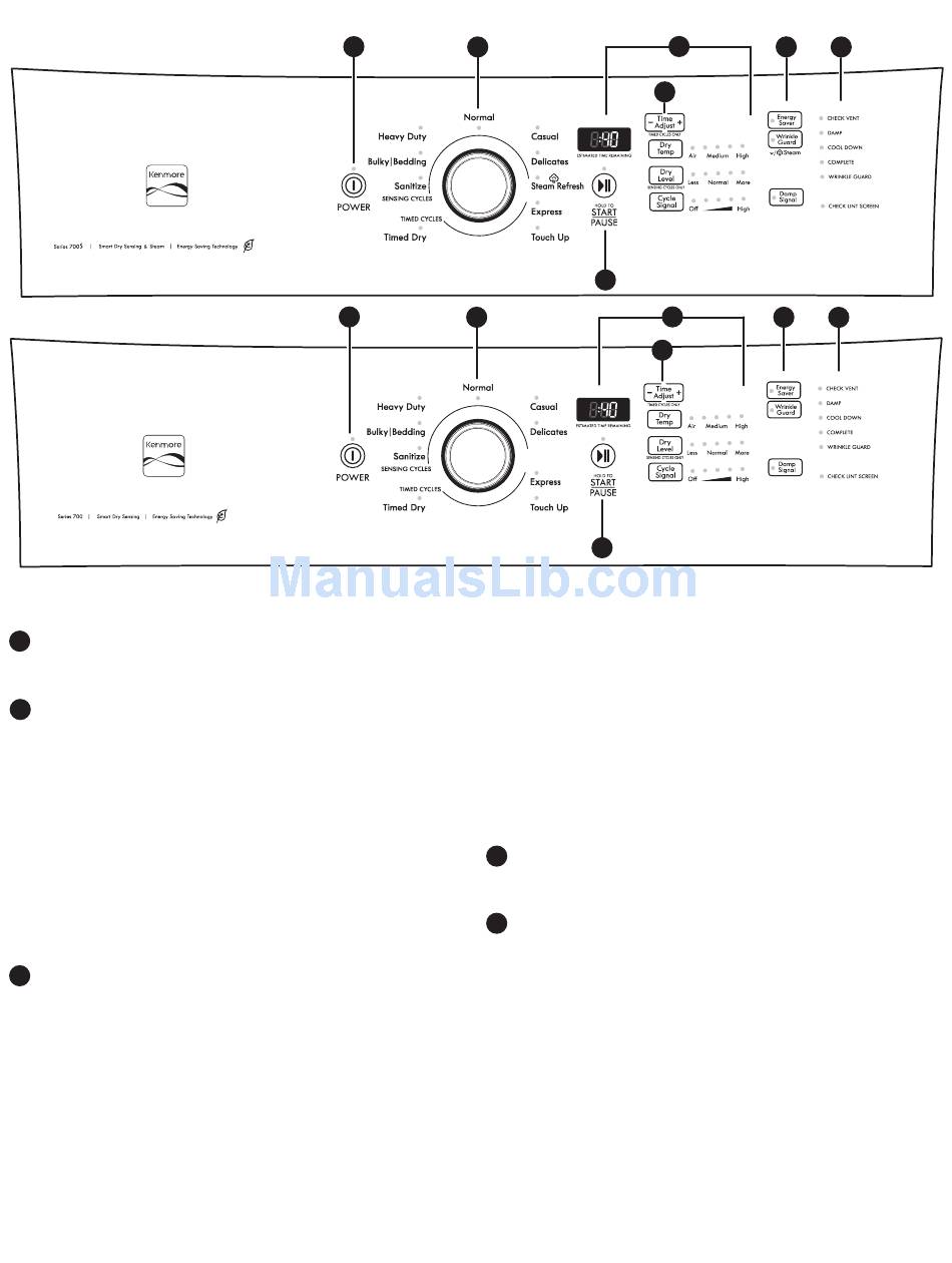 Touch to turn the dryer on and off. Touch to stop/cancel