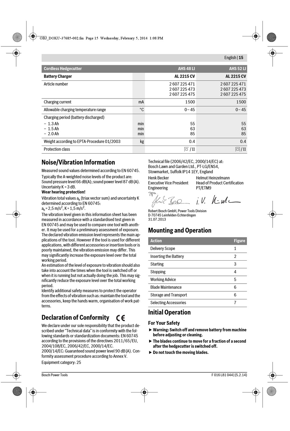 2000/14/EC: Guaranteed sound power level 90 dB(A). Con-