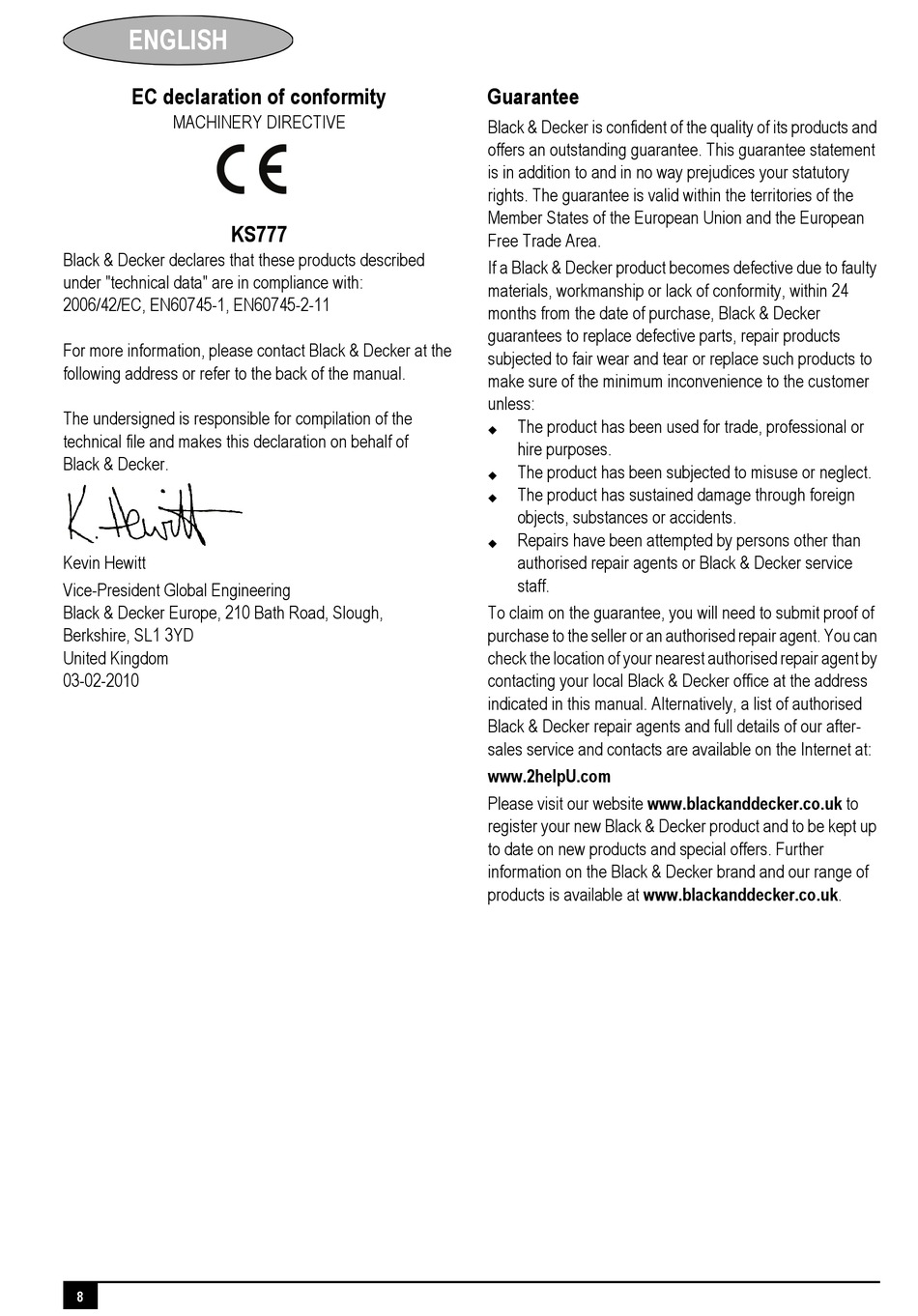 Please visit our website www.blackanddecker.co.uk to