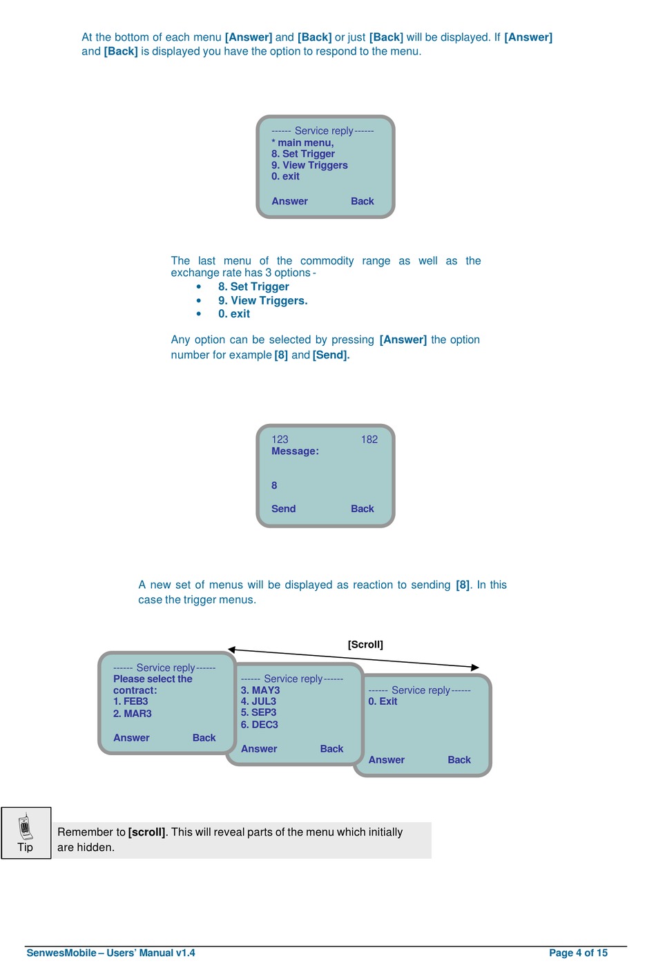 A new set of menus will be displayed as reaction to sending [8]. In this