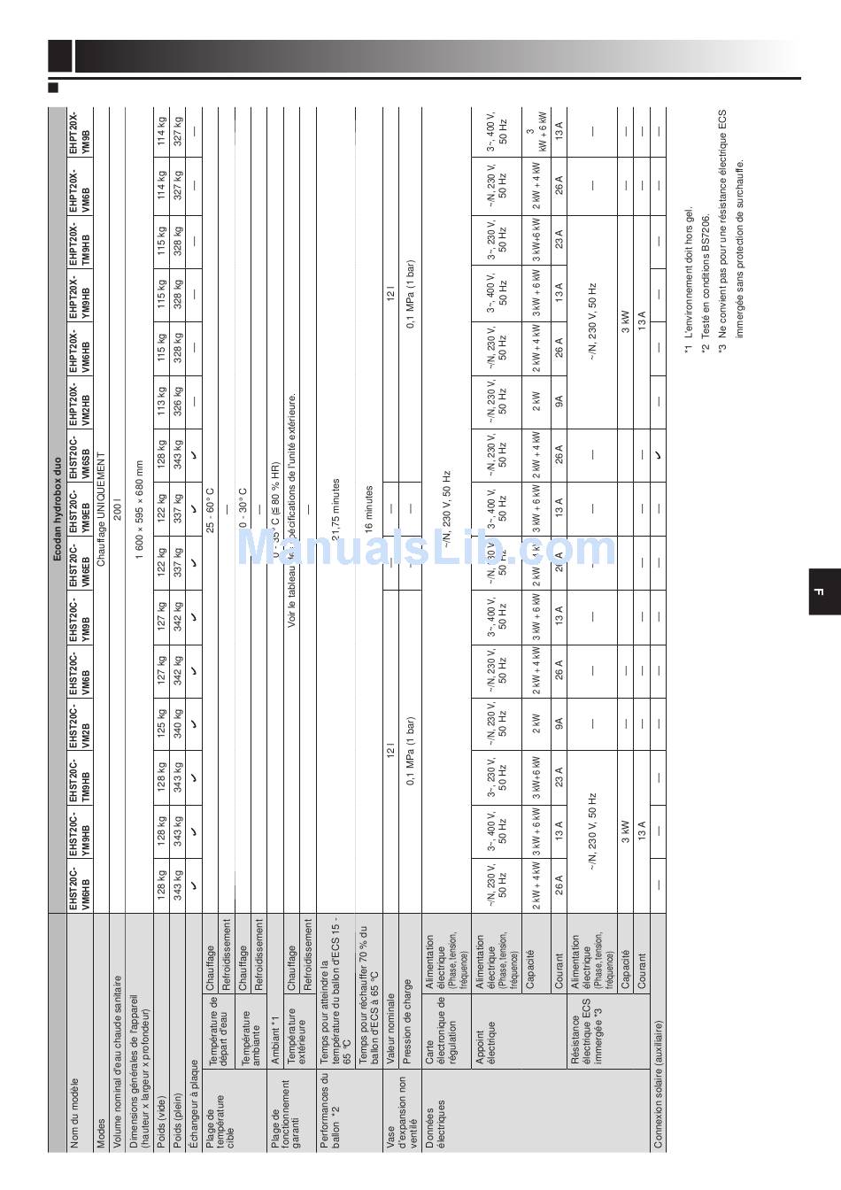 ecodan EHST20C- TM9HB Spécifications Du Produit