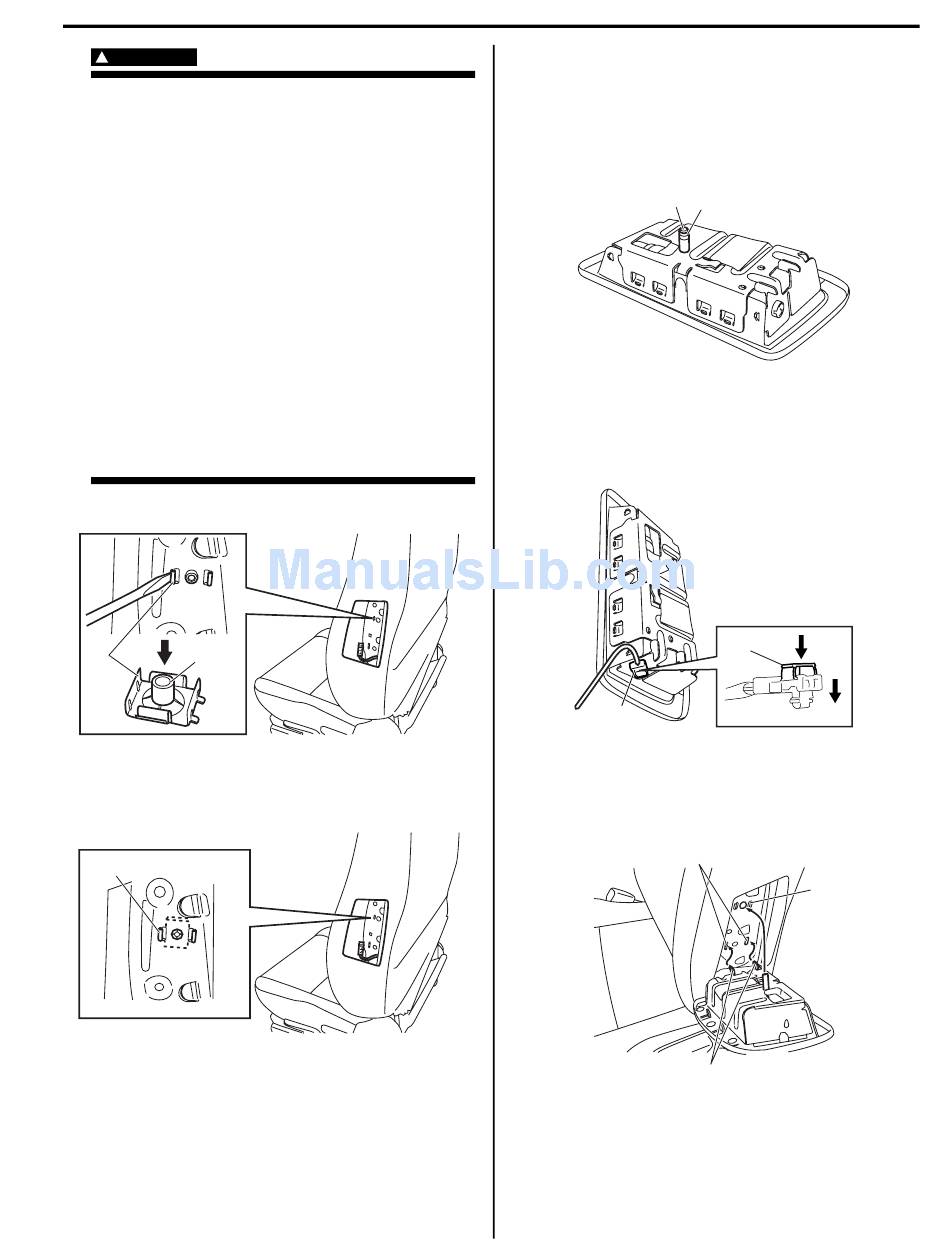 6) Remove fastener (1) with sleeve (2) from seat back.