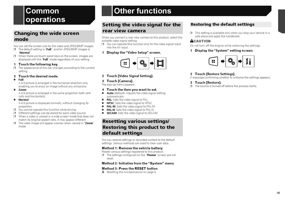 You can restore settings or recorded content to the default