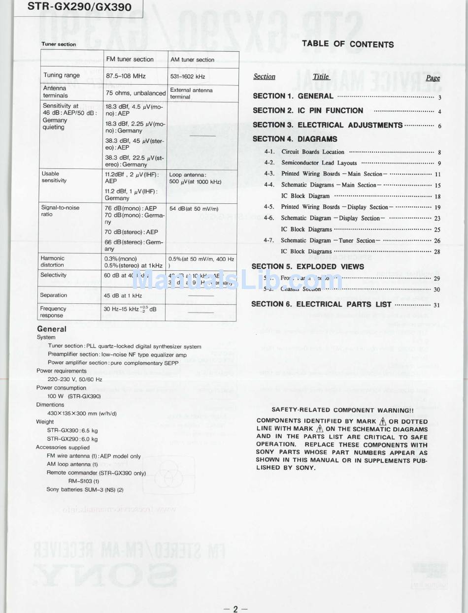 Table Of Contents - Sony Str-Gx290 Servise Manual