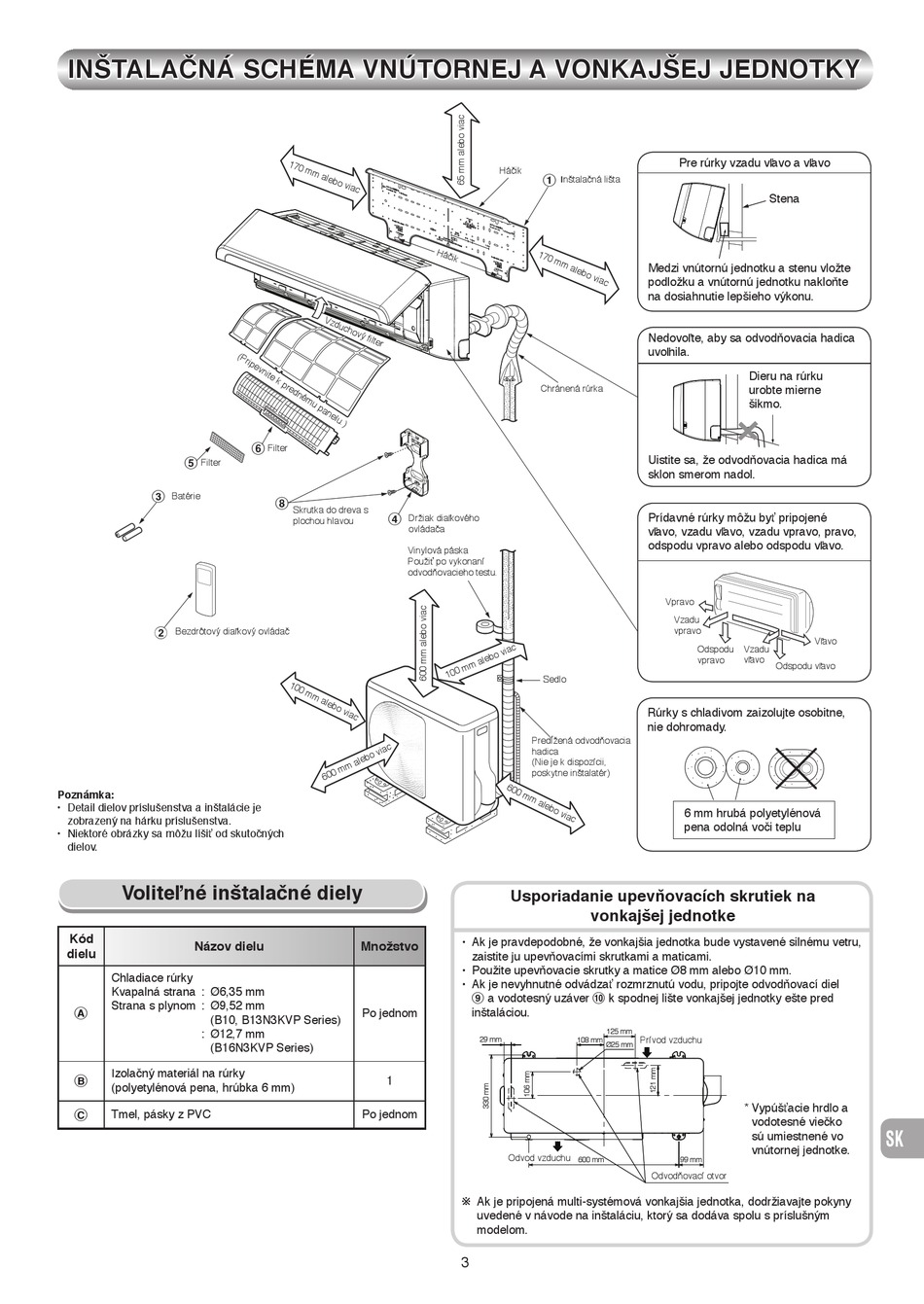 INŠTALAČNÁ SCHÉMA VNÚTORNEJ A VONKAJŠEJ JEDNOTKY