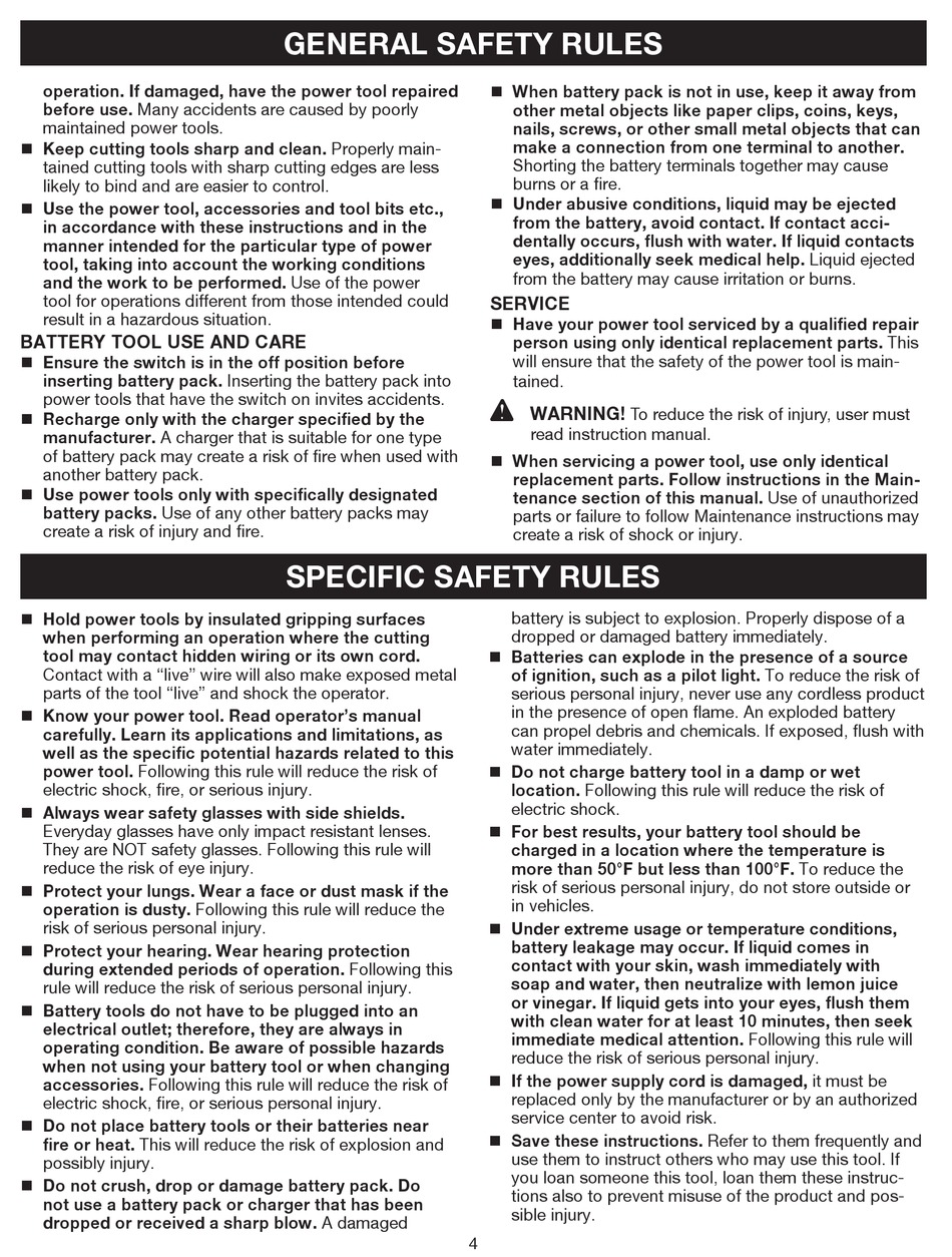 BATTERY TOOL USE AND CARE