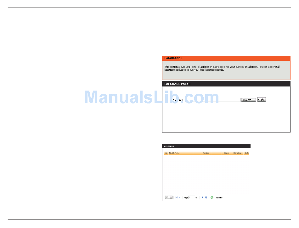 The Language Menu under Settings provides a function to add software application packages to the ShareCenter™