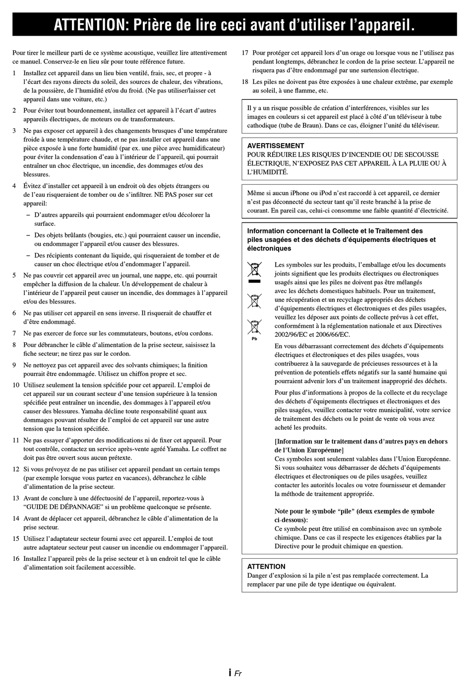 causer des blessures. Yamaha décline toute responsabilité quant aux