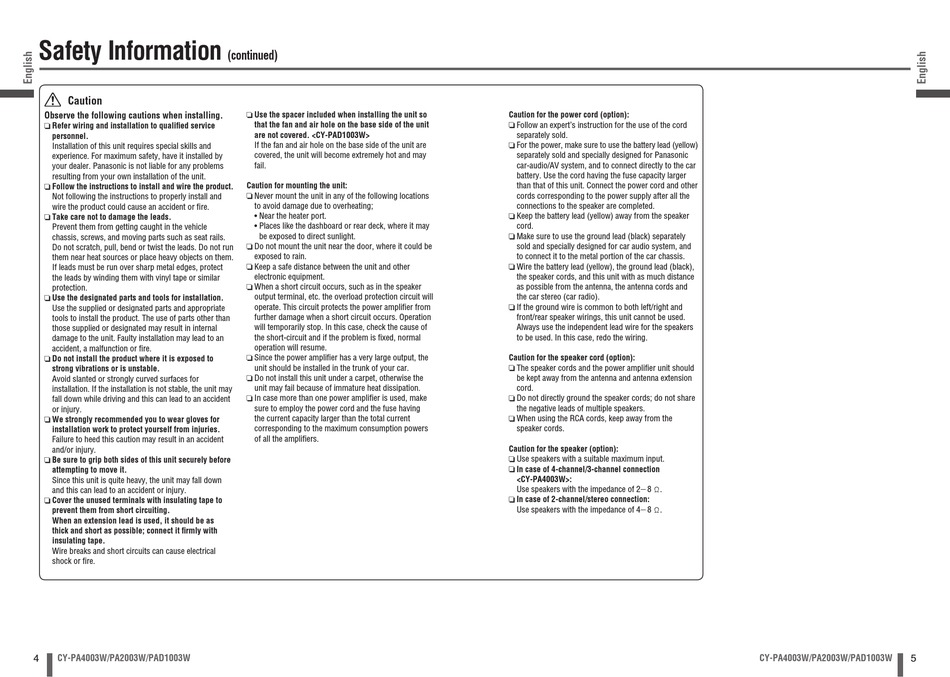 Do you have a question about the CY-PA2003W and is the answer not in the manual?