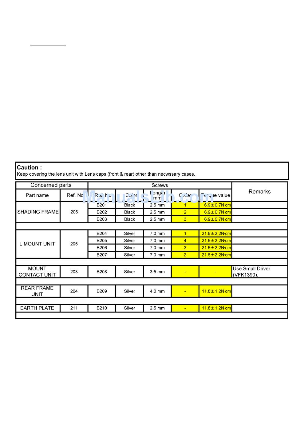 1. When installing the screws, be sure to use the torque driver (RFKZ0456) and tighten the screws with specified torque, men-