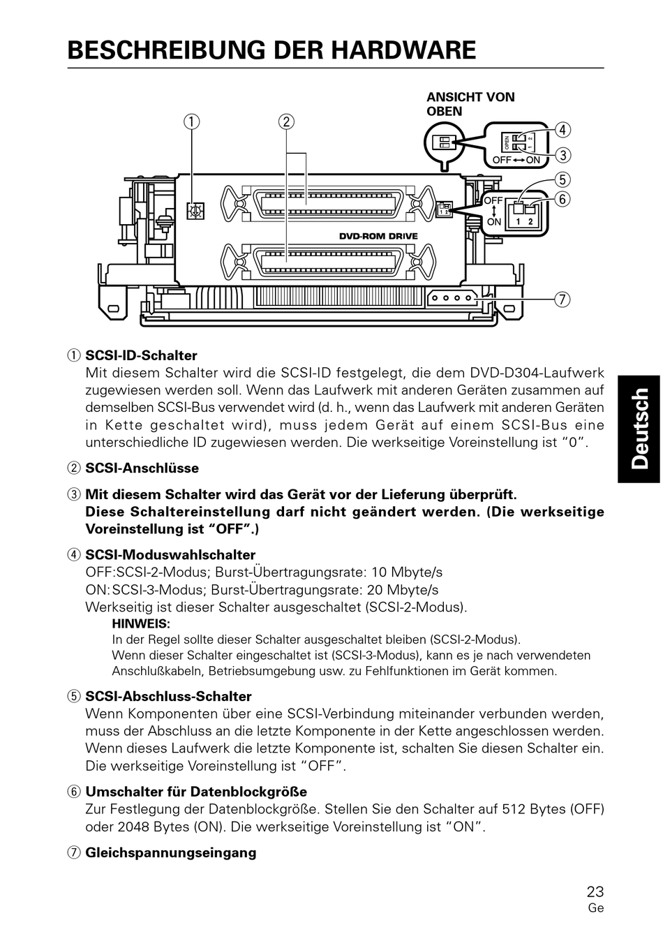 Mit diesem Schalter wird die SCSI-ID festgelegt, die dem DVD-D304-Laufwerk