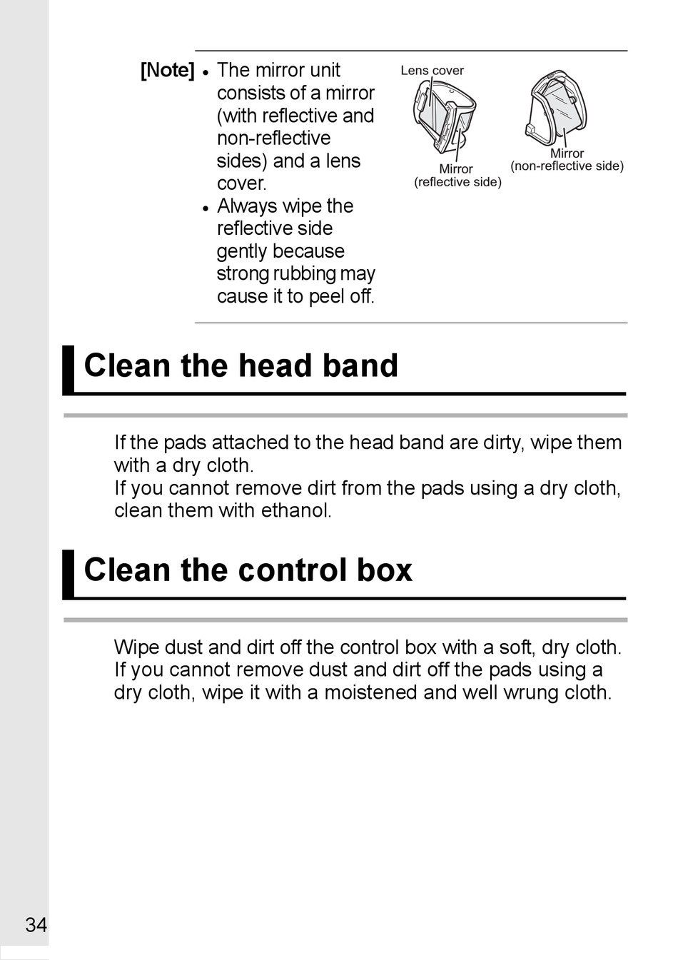 If the pads attached to the head band are dirty, wipe them