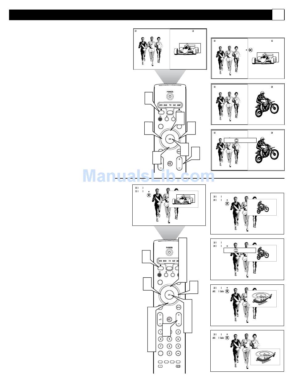 To change channels in the PIP screen, press