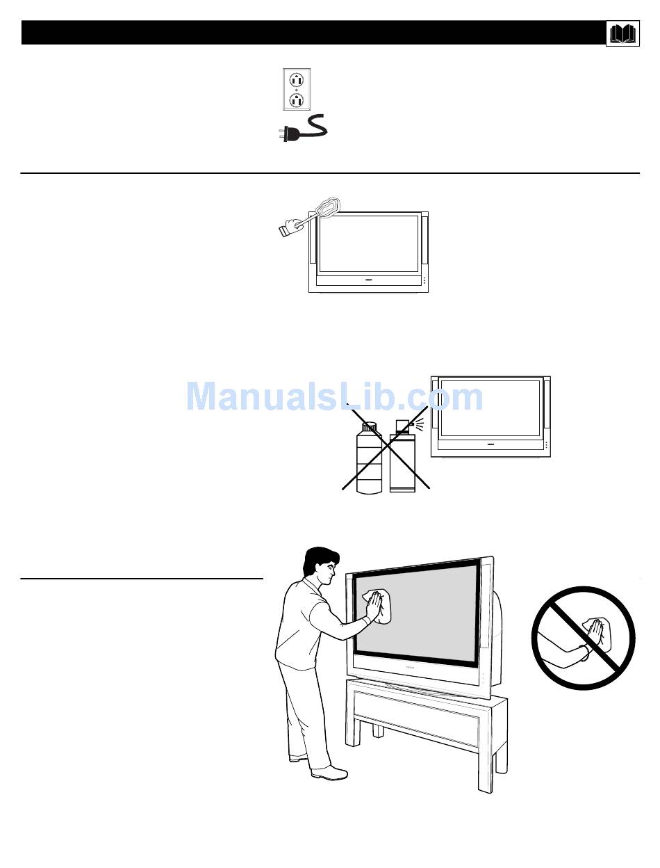 • Regularly dust the TV cabinet with a dry,