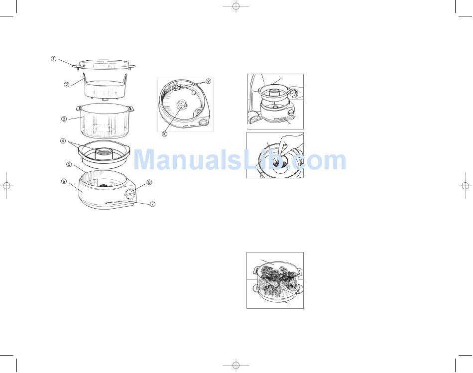 CAUTION: Use pot holders when removing the lid or lifting the steaming basket, drip tray