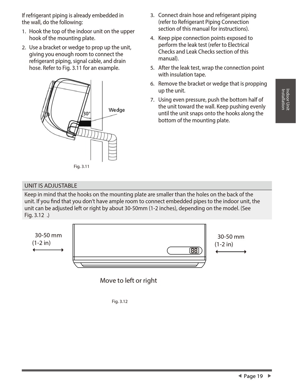 unit. If you find that you don't have ample room to connect embedded pipes to the indoor unit, the