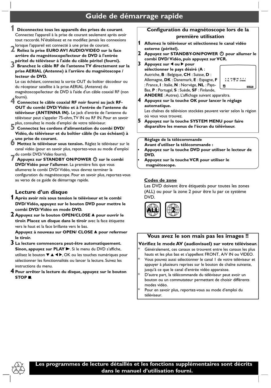 allumerez le combi DVD/ Vidéo, vous devrez terminer la