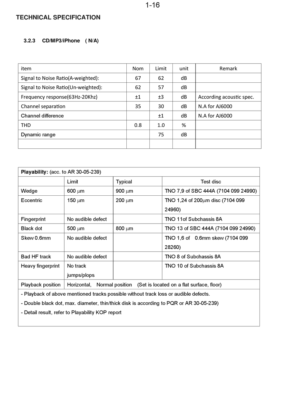 According acoustic spec.
