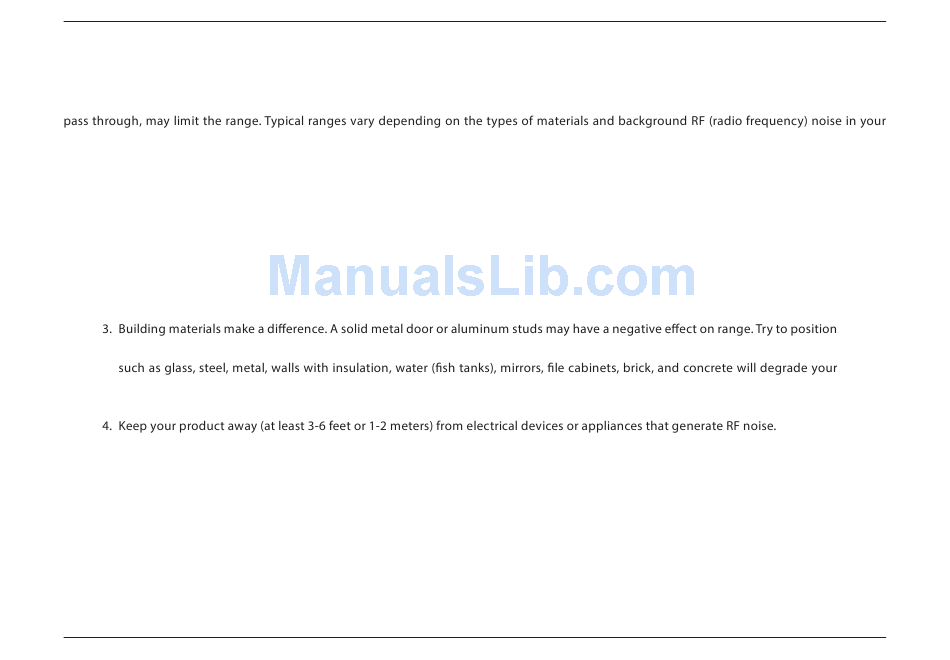 access points, wireless routers, and computers so that the signal passes through drywall or open doorways. Materials and objects