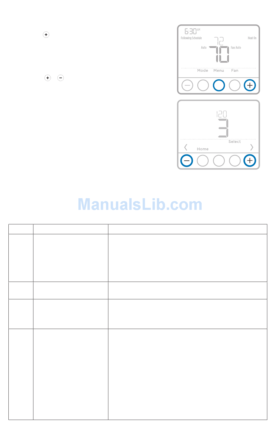 de temperatura o para activar/desactivar el cronograma, toque MENU (Menú) y
