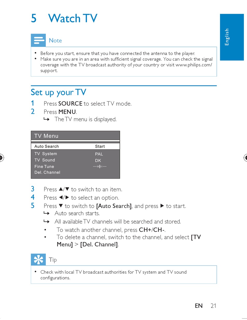 coverage with the TV broadcast authority of your country or visit www.philips.com/