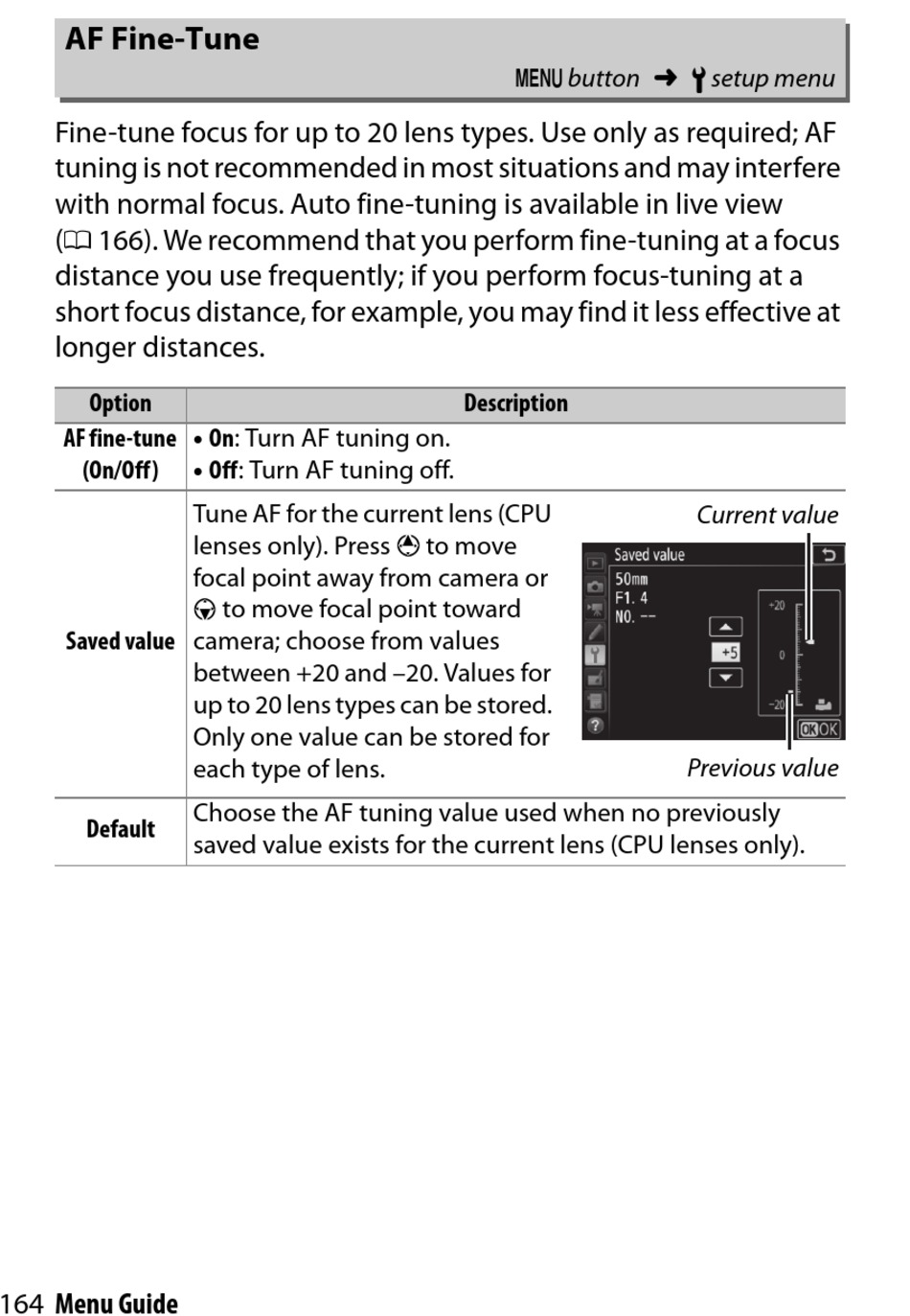 • Off: Turn AF tuning off.