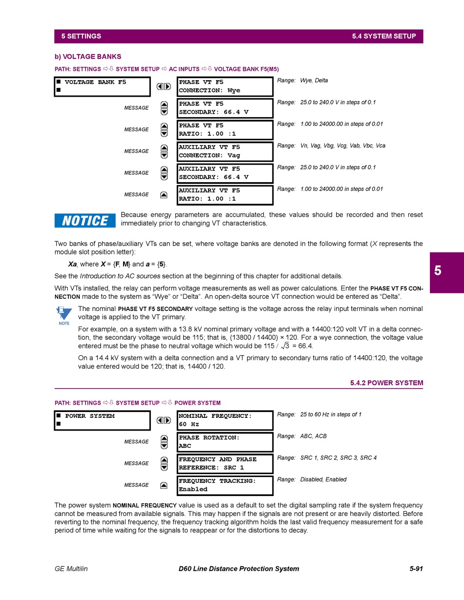 Two banks of phase/auxiliary VTs can be set, where voltage banks are denoted in the following format (X represents the