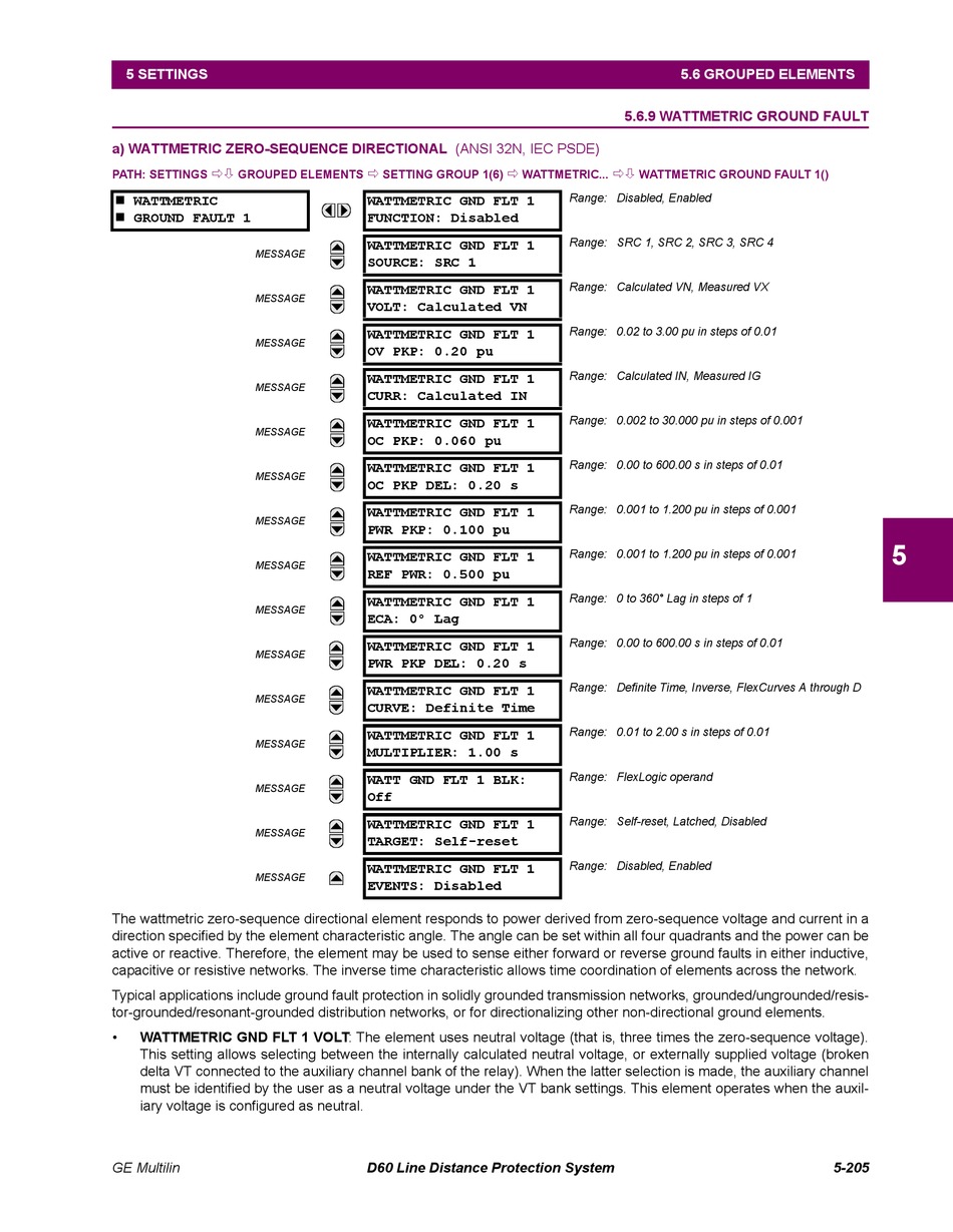 5.6.9 WATTMETRIC GROUND FAULT