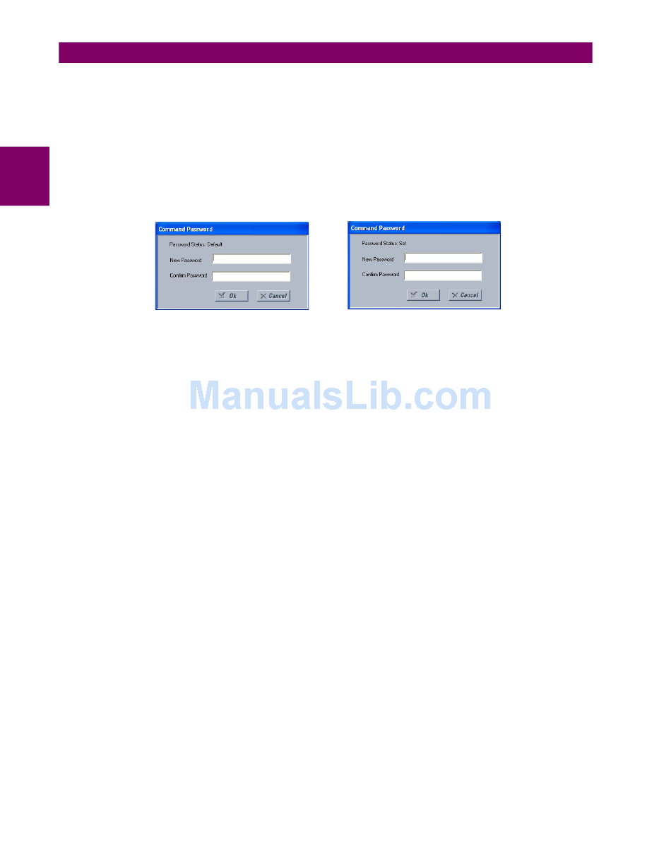 set to "0", the password security feature is disabled. As shown in the figures, the window indicates when the password is at