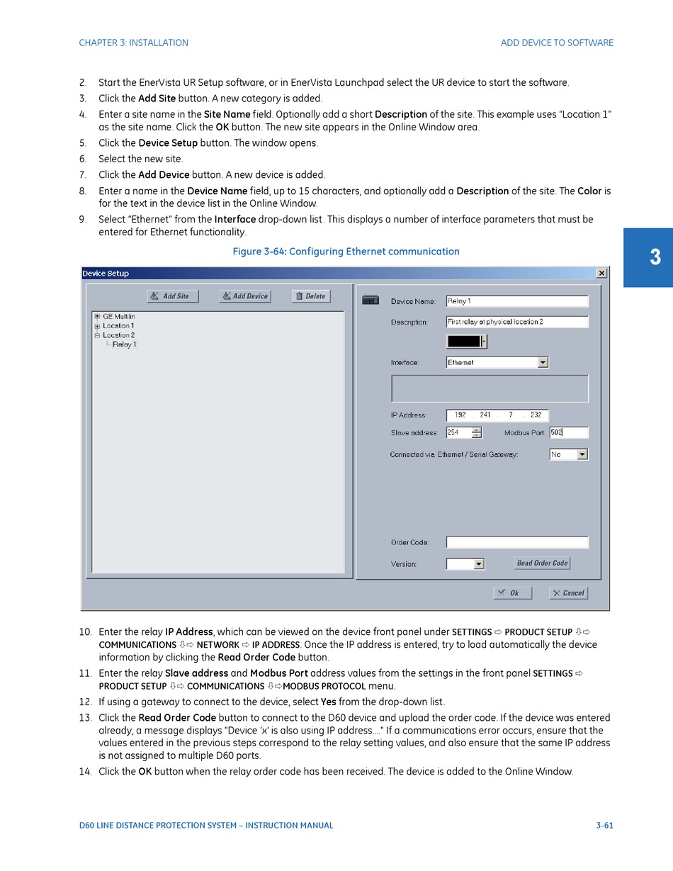 Figure 3-64: Configuring Ethernet communication