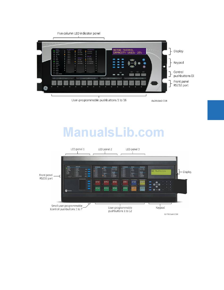 The following figure shows the vertical front panel for relays ordered with the vertical option.