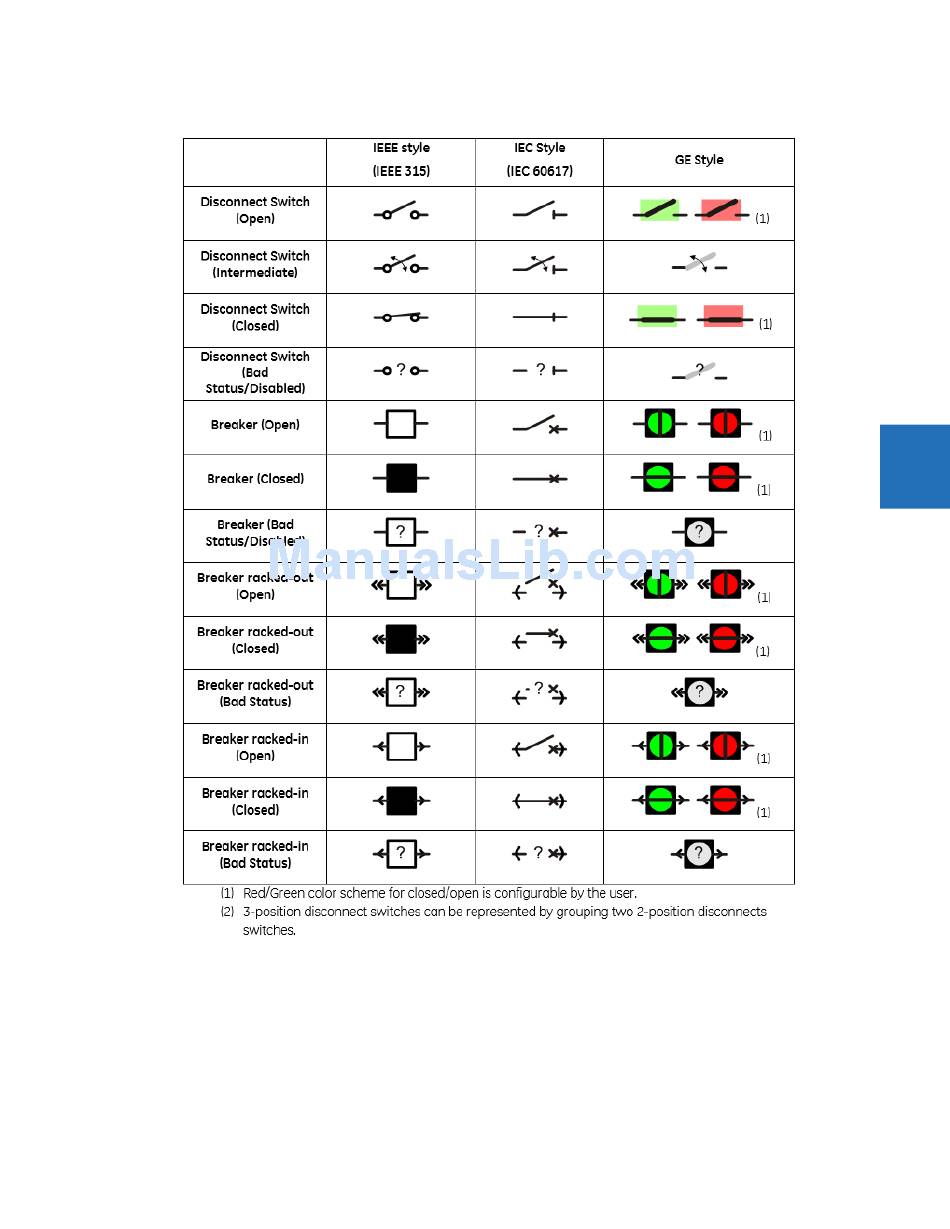 color scheme (red - closed, or red - open), and assigned side button (if any). If the selected breaker or disconnect element