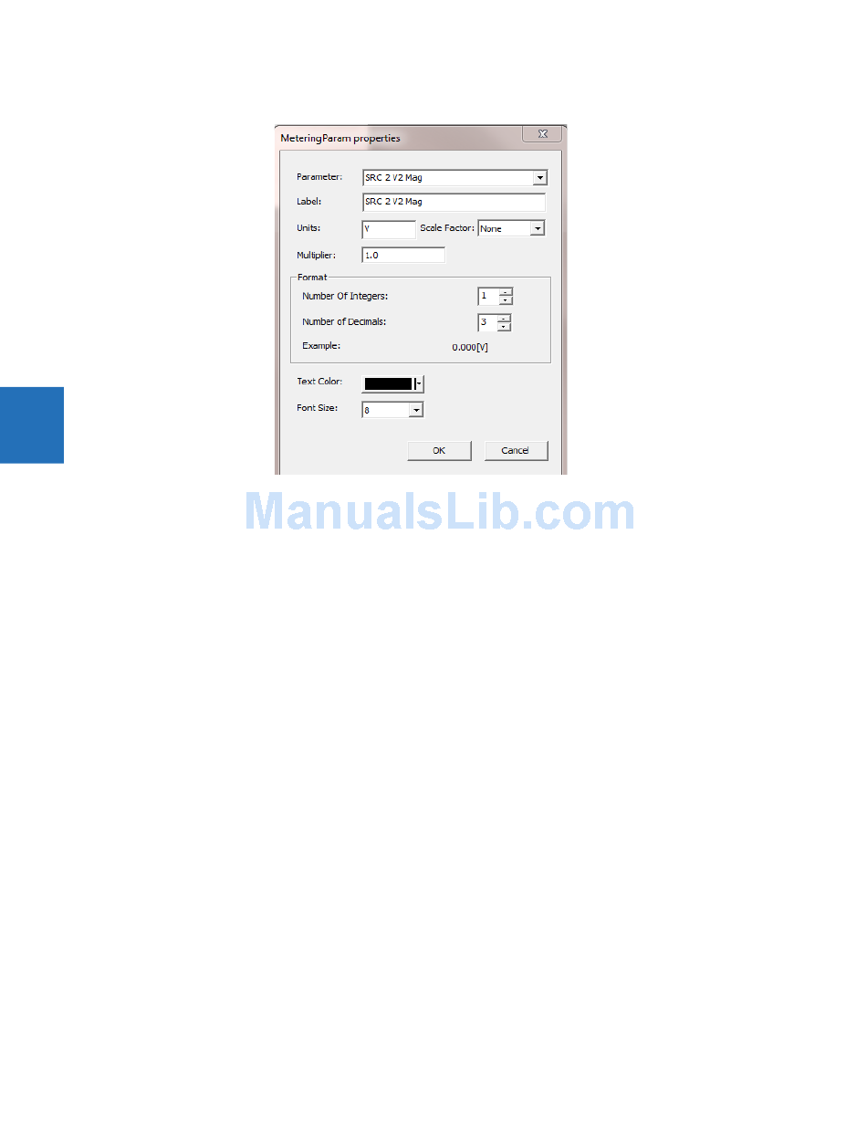 a metered value. Normally the window background is dark, and when the configured FlexLogic operand becomes On, the