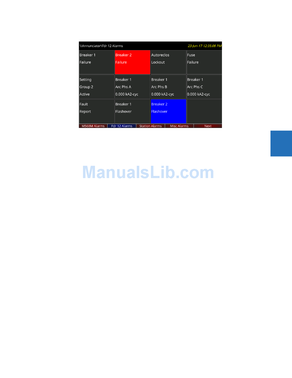 where alarms are not triggered have a grey Tab label. Pages that have no configured windows do not have Tab