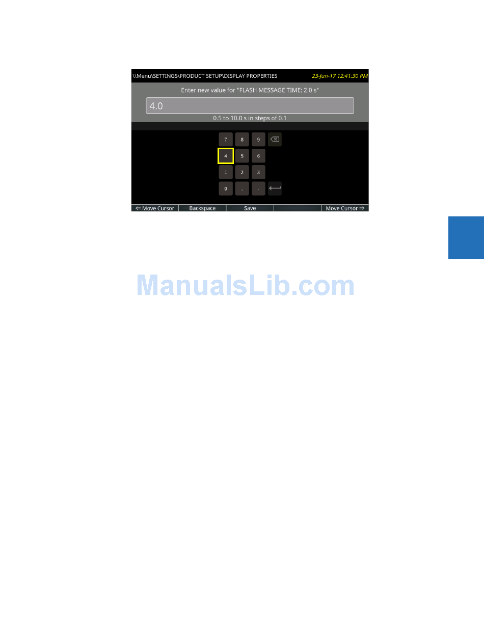 Using the arrow keys, enter another time, for example 4 for four seconds. These Up, Down, Left, and Right pushbuttons